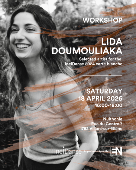 Cet atelier est organisé dans le cadre de la nouvelle création chorégraphique de Lida, « Times and Signatures – A Matter of Femininity », lauréate de la carte blanche d'InciDanse 2024.